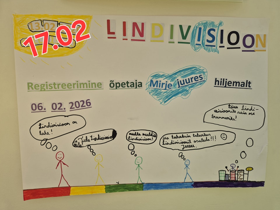 Stiilinädal Loomise kuupäev 05.02.2026 Autor Kärt Jürgens EV 108 aktus Loomise kuupäev 05.02.2026 Autor Kärt Jürgens Lindi Lasteaed-Algkool kuulutab välja konkursi liikumisõpetaja (0,27) ametikoha täitmiseks Loomise kuupäev 21.11.2025 Autor Egle Rumberg Lindi Lasteaed-Algkool võtab tööle lasteaia abiõpetaja Loomise kuupäev 14.11.2025 Autor Egle Rumberg Vaata rohkem